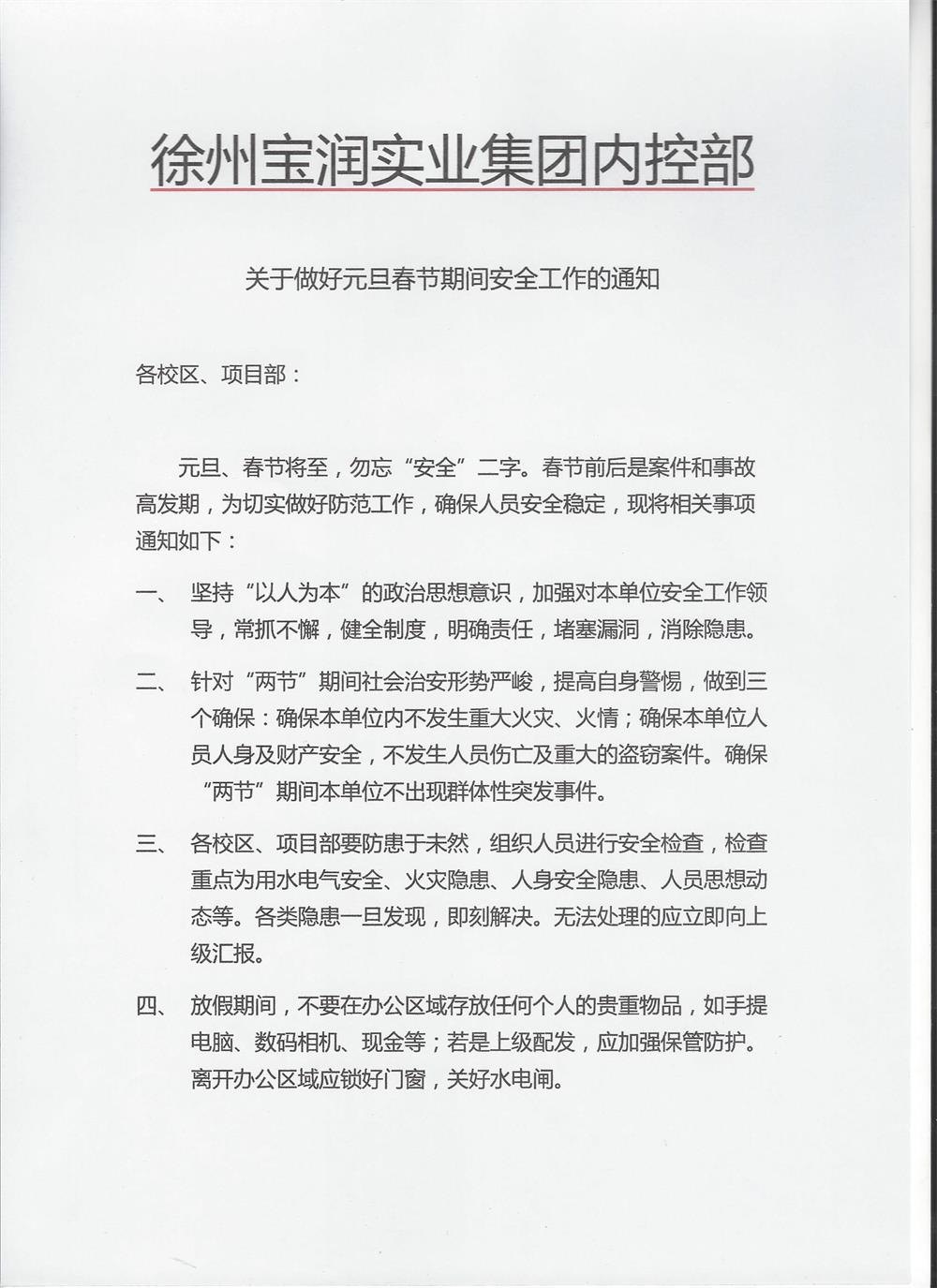 關(guān)于做好元旦春節(jié)期間安全工作的通知