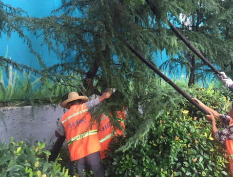 各項目點及時扶正加固倒伏樹木,清理斷枝,修復受損構(gòu)筑物,消除安全隱患,確保主要路段暢通,秩序井然。