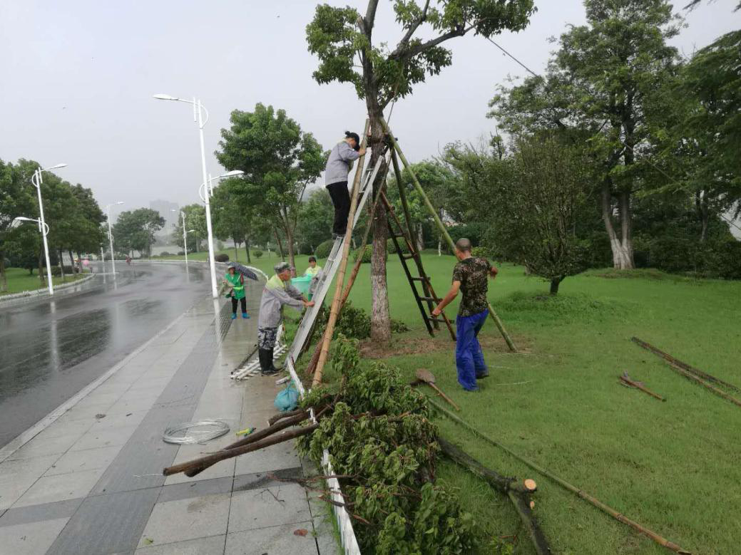 進入8月以來,徐州市接連遭受了多次臺風侵襲,持續(xù)的大風強降雨過程導致南佛園林養(yǎng)護的各個項目點苗木,道路及其它設施損毀嚴重,面對嚴峻的災情,南佛園林號召所有項目經(jīng)理帶領廣大一線員工迅速行動起來,搶扶搶修,24小時奮戰(zhàn)在第一線,譜寫了一曲感人篇章。