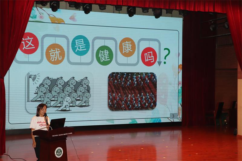 劉老師將理論講解與案例分析相結(jié)合,與同學(xué)們積極互動(dòng),使2019級(jí)初一新生在輕松愉快的氛圍中,接受了一次心靈養(yǎng)護(hù)和健康洗禮。