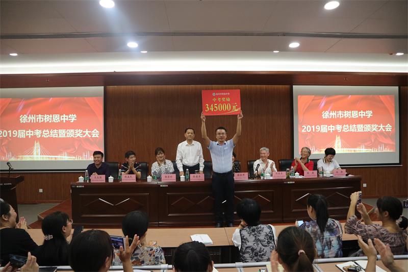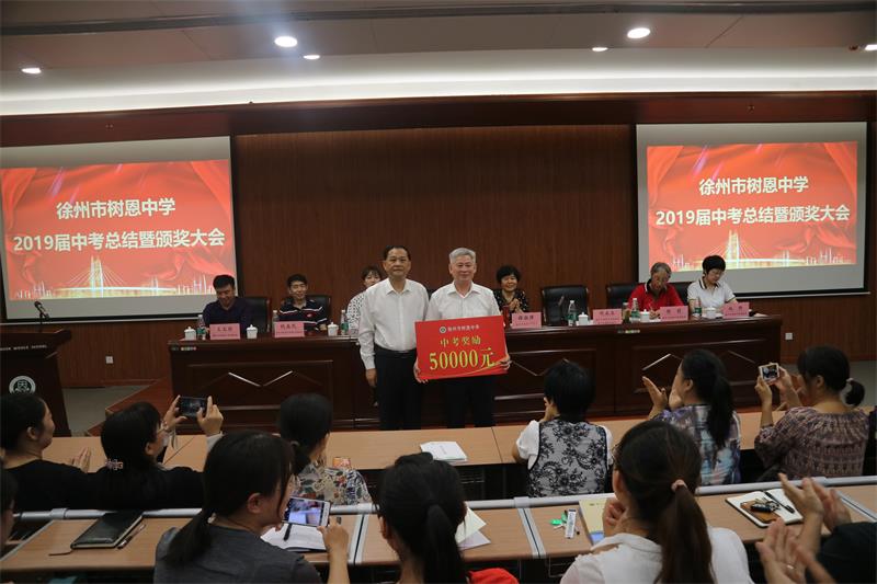 2019年9月27日下午,徐州市樹恩中學(xué)2019屆中考總結(jié)暨頒獎(jiǎng)大會(huì)在高鐵校區(qū)第一階梯教室隆重舉行,全體初中教師和高中部分教師參加了會(huì)議。劉永生校長(zhǎng)主持大會(huì)。薛淑萍校長(zhǎng)作了總結(jié)報(bào)告,對(duì)2019年中考工作進(jìn)行總結(jié),對(duì)2020年中考進(jìn)行動(dòng)員部署。徐州市寶潤(rùn)實(shí)業(yè)集團(tuán)張愛(ài)萍董事長(zhǎng)代表集團(tuán)對(duì)取得優(yōu)異成績(jī)的中考團(tuán)隊(duì)頒發(fā)了獎(jiǎng)金。原九年級(jí)部主任石院老師、現(xiàn)九年級(jí)部主任竇道洲老師、高鐵校區(qū)八年級(jí)部主任盧振錦老師、高一年級(jí)部主任程建軍老師分別代表年級(jí)部老師作了大會(huì)發(fā)言。