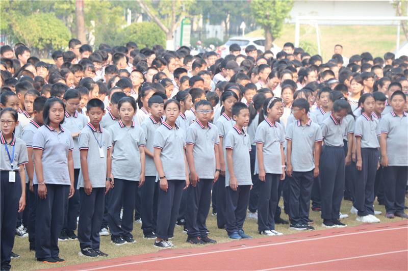 樹恩附小的全體師生與初中部和高中部大哥哥、大姐姐們一起參加了新學期的第一次升旗儀式。