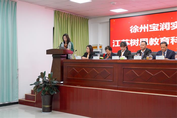 董事局董事、徐州市樹(shù)恩中學(xué)總校長(zhǎng)兼初中部高鐵校區(qū)校長(zhǎng)薛淑萍同志做工作匯報(bào)。