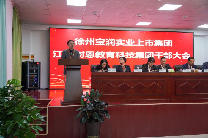 2020年10月10日,徐州寶潤(rùn)實(shí)業(yè)上市集團(tuán)、江蘇樹(shù)恩教育科技集團(tuán)干部大會(huì)在徐州市樹(shù)恩外國(guó)語(yǔ)小學(xué)舉行。徐州寶潤(rùn)實(shí)業(yè)上市集團(tuán)董事局主席、董事長(zhǎng)張愛(ài)平出席會(huì)議并作重要講話。集團(tuán)董事局成員及下屬產(chǎn)業(yè)集團(tuán)經(jīng)營(yíng)團(tuán)隊(duì)、職能部門(mén)主要負(fù)責(zé)人參加會(huì)議。