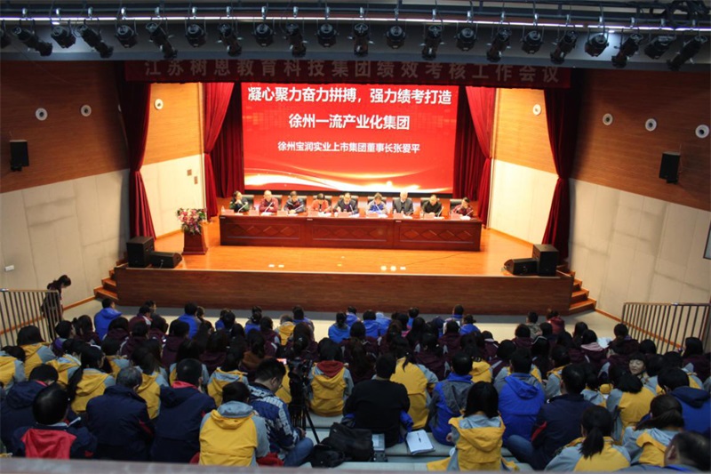 2019年11月23日,上海股交所上市企業(yè)徐州寶潤實業(yè)集團、江蘇樹恩教育科技集團績效考核工作會議在徐州市樹恩中學(xué)高鐵校區(qū)小劇場召開,來自兩大集團的機關(guān)部門工作人員、八大產(chǎn)業(yè)領(lǐng)導(dǎo)班子成員、各產(chǎn)業(yè)項目部負責(zé)人、樹恩中學(xué)高鐵校區(qū)和復(fù)興北校區(qū)以及樹恩一院三中心全體教職員工共300余人參加了會議。兩大集團董事長張愛平出席會議并作重要講話。