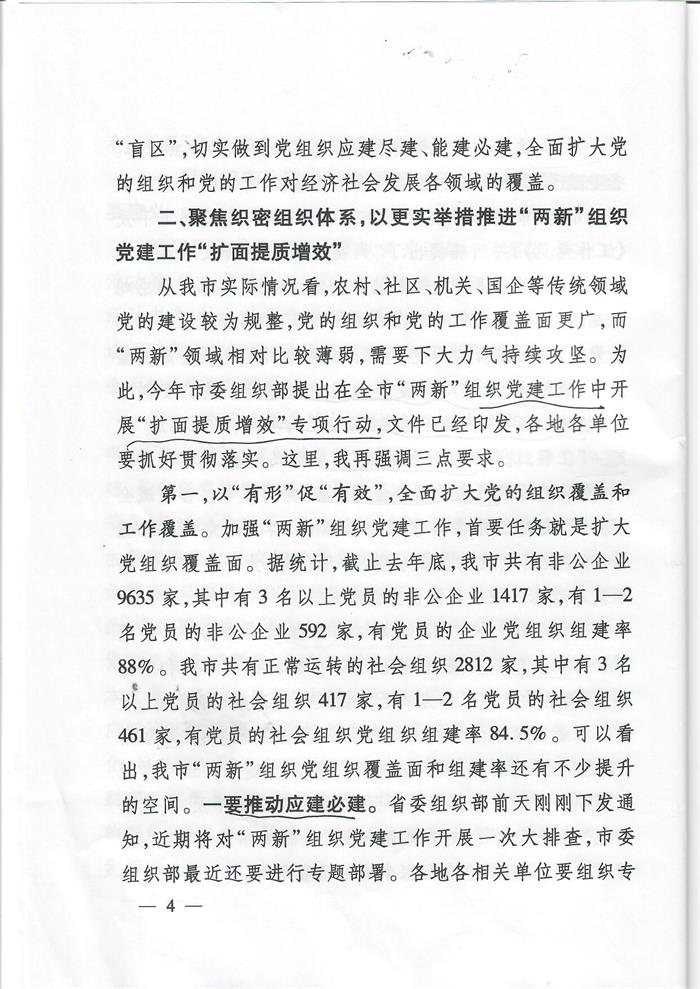在全市推動(dòng)基層黨組織全面覆蓋暨“兩新”組織黨建工作“擴(kuò)面提質(zhì)增效”專項(xiàng)行動(dòng)現(xiàn)場(chǎng)會(huì)上的講話